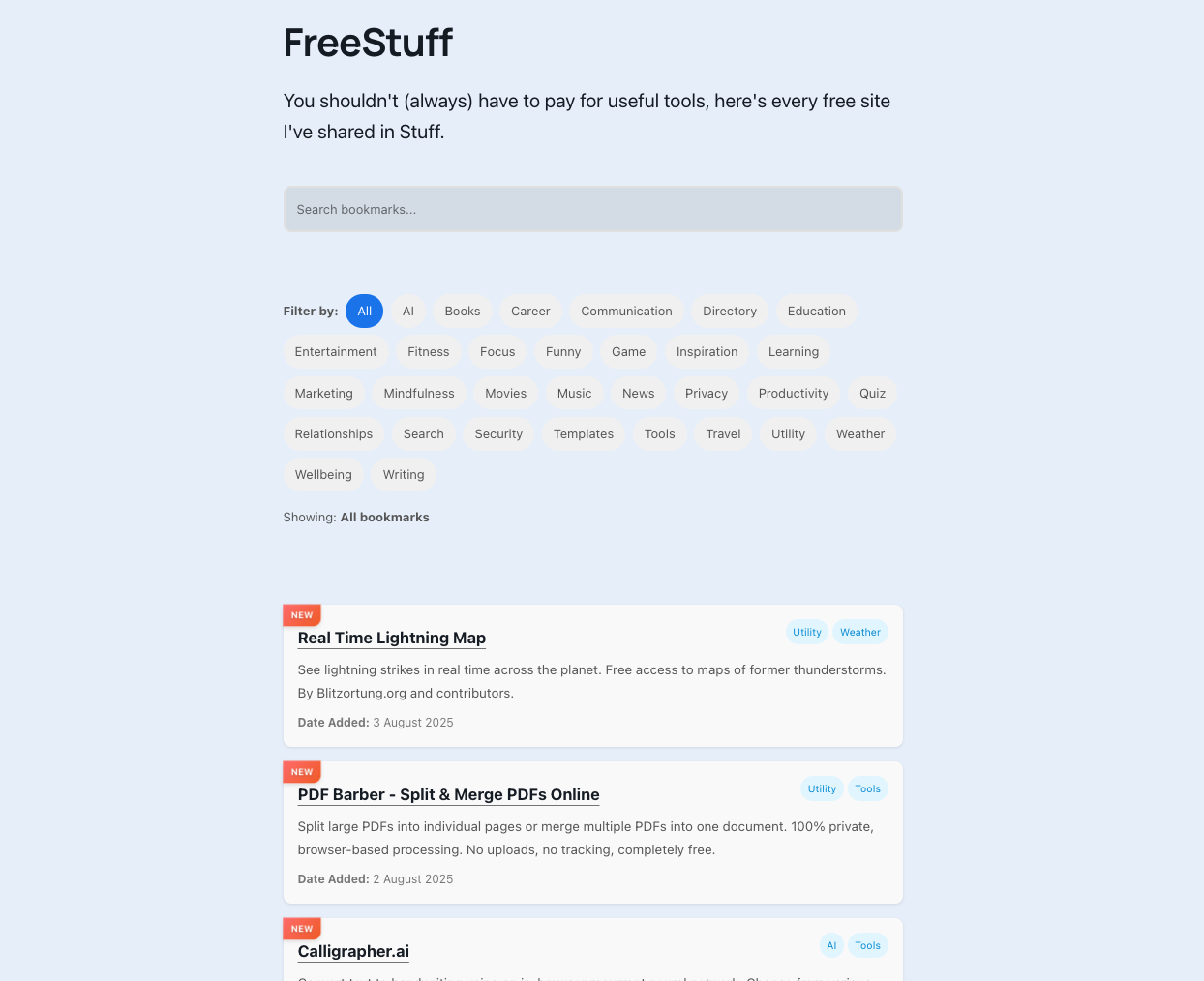 Want to see the tool in action? Check out my Free Stuff collection where you can search and filter through hundreds of useful (and actually free) tools and resources.
